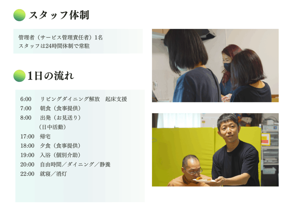 - 夜間スタッフ常駐